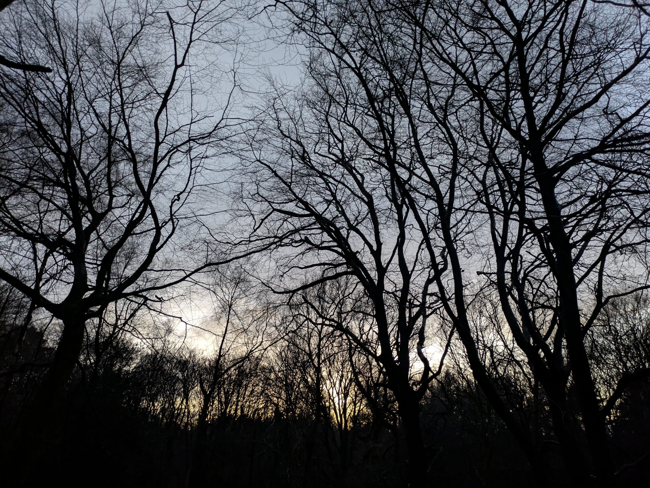 I went for a walk alone yesterday afternoon, in the nearby pine woods, just as it was getting dark. I don’t get spooked by being alone in the deep forest. But yesterday, on the shortest day of the year, something changed. I was standing looking at my phone to get my location when a crazy, raucous laugh started up – a crow, of course. Then it sounded like I was near the road, with the sound of wet tyres swishing past, somehow comforting. But it was only the wind, soughing through the trees, there was no road at all nearby. Something moved up ahead, and I wondered how I’d feel if someone was there, coming towards me. It was a muntjac deer, bouncing away down one of the many gloomy paths leading off between thick fir trees.